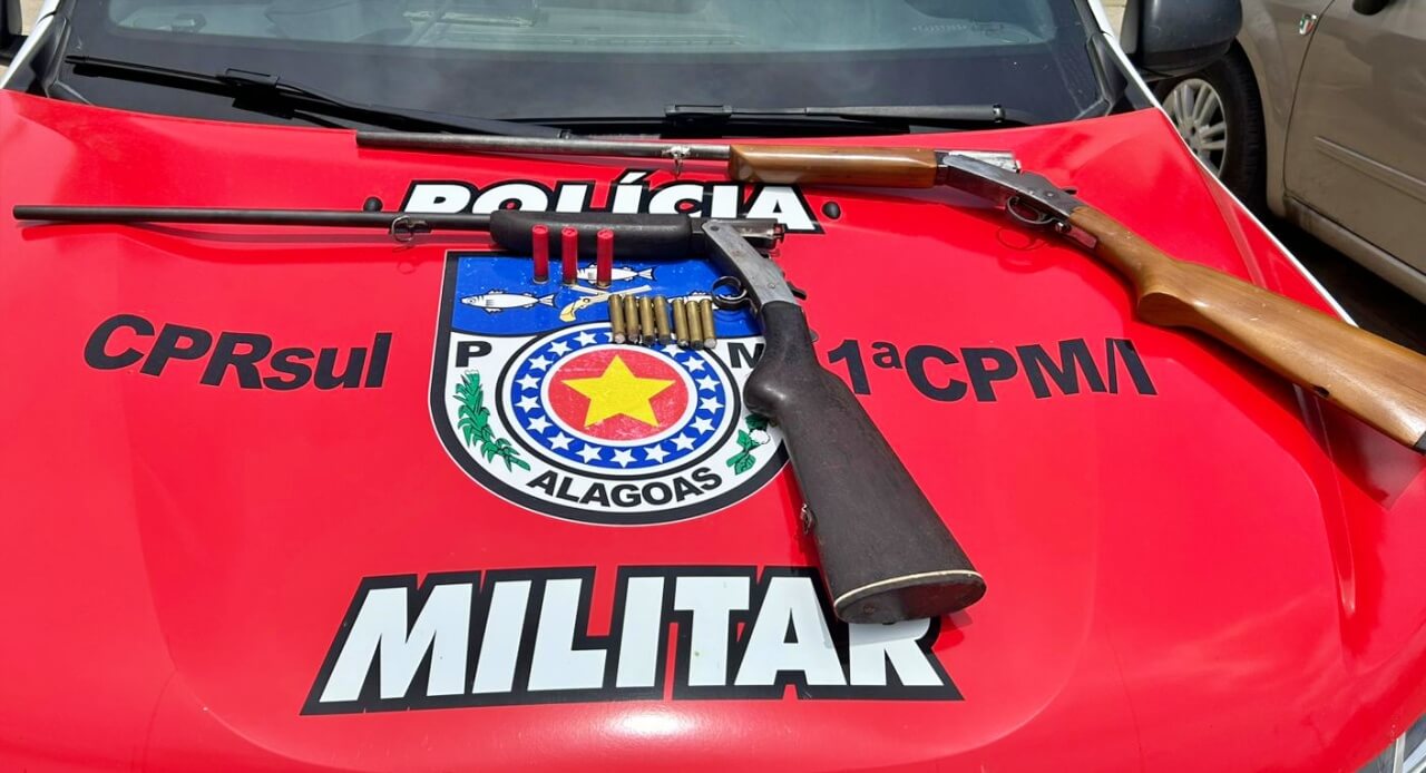 Na ação, foram apreendidas duas espingardas, uma calibre 36 e outra 32, configurando porte ilegal de arma de fogo. O homem foi encaminhado à 6ª DRP em São Miguel dos Campos, onde foi autuado e permaneceu detido à disposição da Justiça.