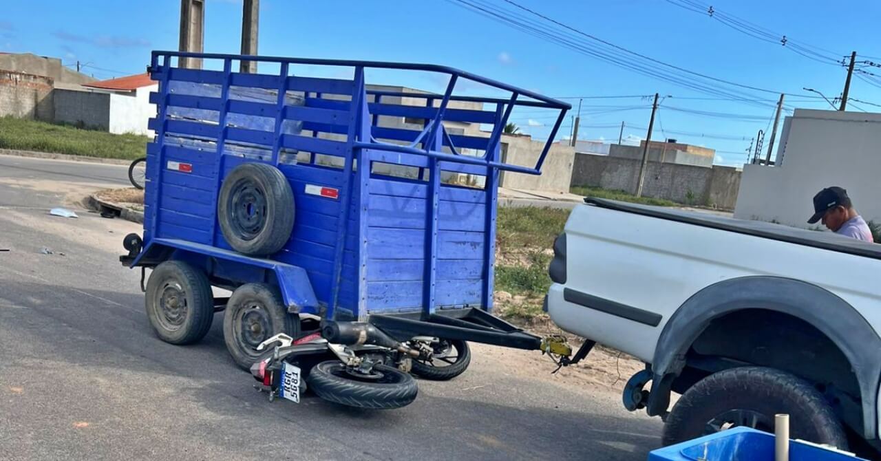 A colisão envolveu uma motocicleta Honda CB 250 Twister prata, e uma caminhonete modelo Mitsubishi L200 branca, que trafegava com uma carrocinha acoplada.