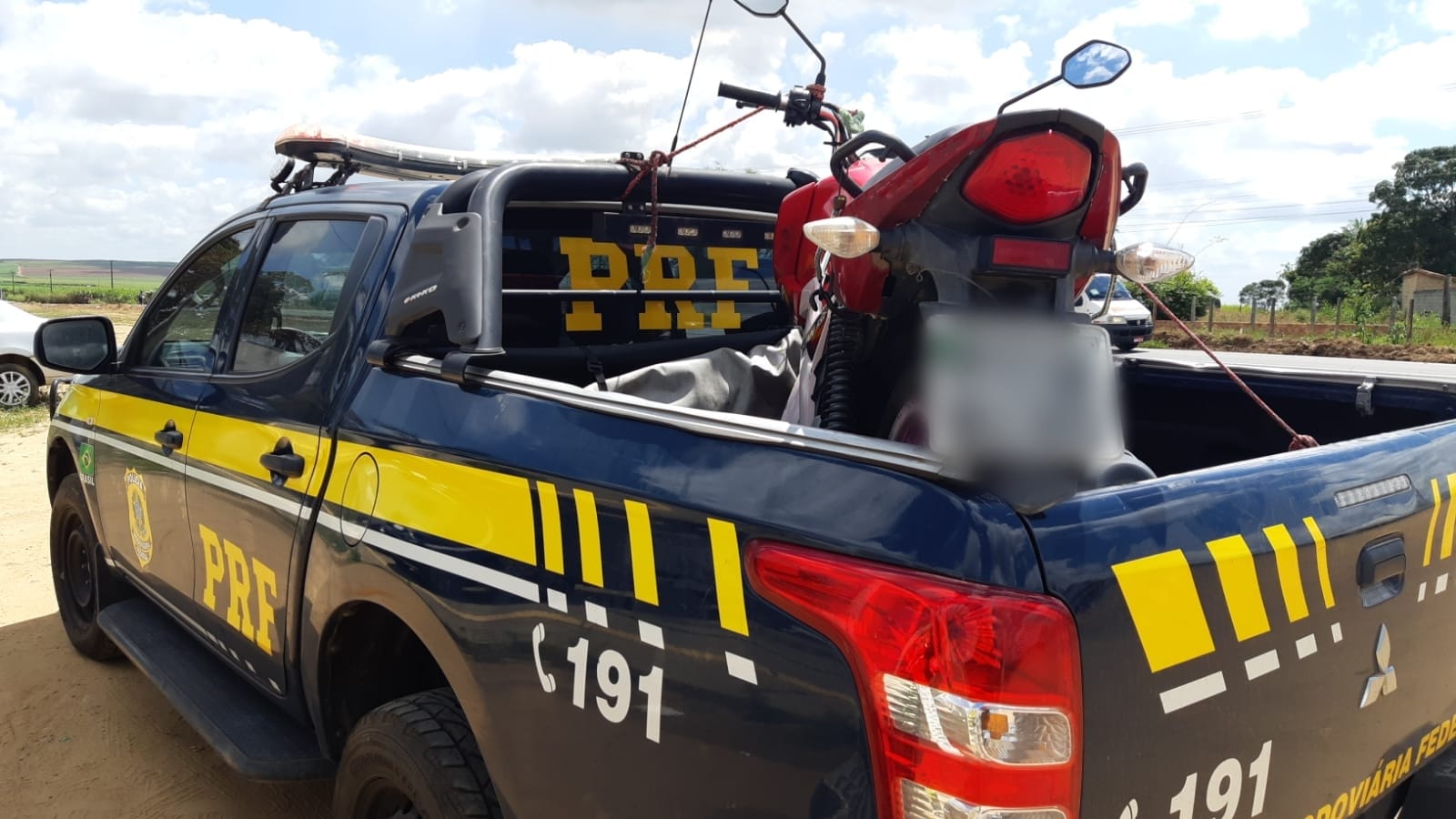 Por volta das 11h30 uma equipe abordou uma Honda CG, de cor vermelha e sem placa, conduzida por um menor de de 15 anos de idade. No momento de verificar os sinais identificadores do veículo, os policiais observaram que o chassi e o número do motor estavam adulterados.