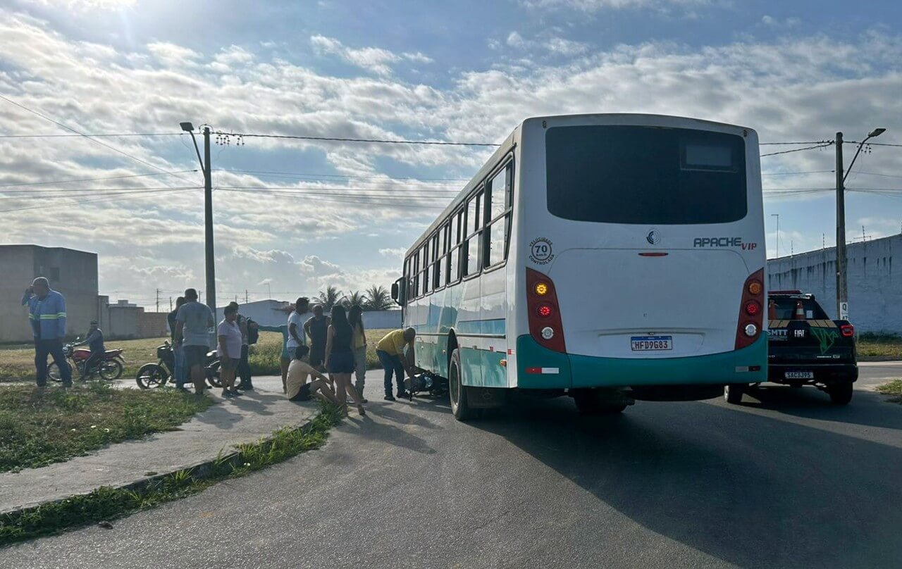 Adolescente fica ferido após colisão entre moto e ônibus em São Miguel dos Campos