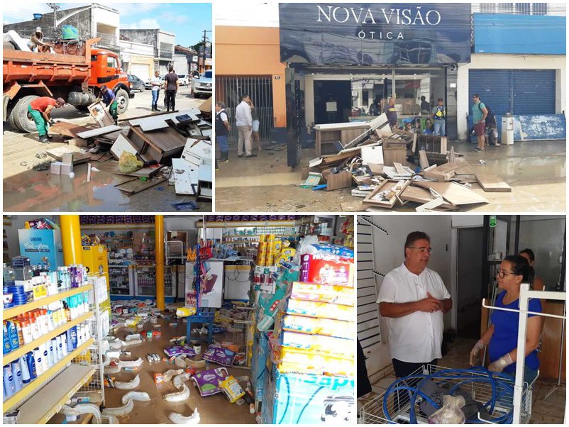 Águas baixam e comerciantes contabilizam prejuízos causados pelas chuvas em São Miguel dos Campos