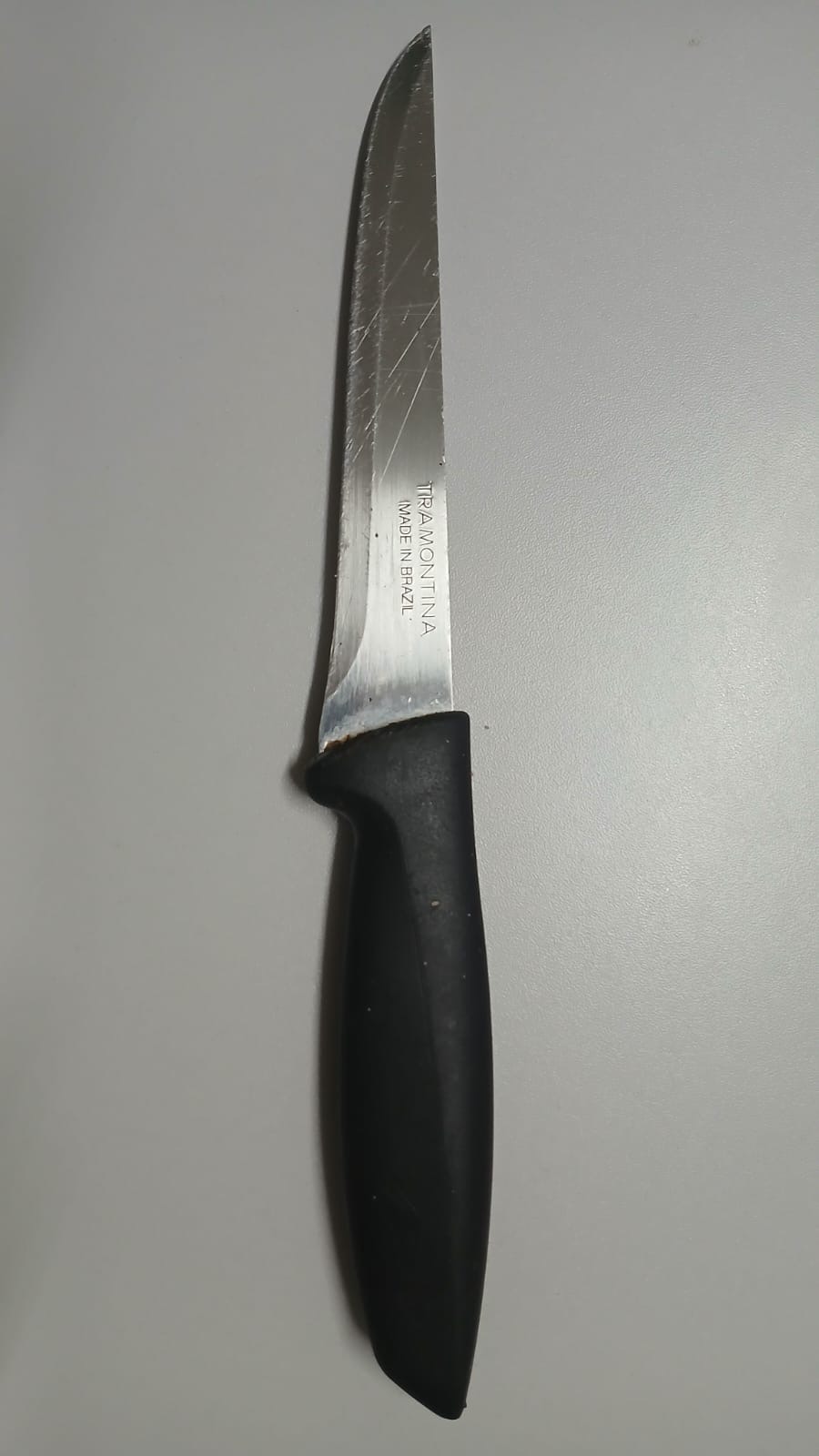 Uma faca, que teria sido usada no crime, foi apreendida. Buscas foram realizadas, mas o suspeito não foi localizado.