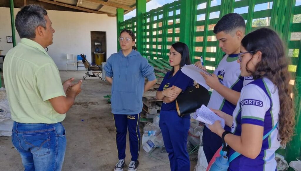 Os estudantes fizeram uma visita de campo à Associação de Catadores (ACAMARE) para coletar informações sobre reciclagem, essencial para o desenvolvimento do seu projeto.