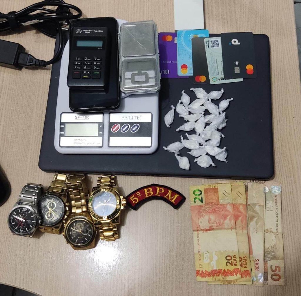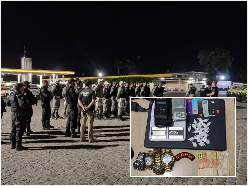 Já durante a investigação, as forças policiais apreenderam 84 bombinhas de maconha; 75 pedrinhas de crack; 3 pedras de crack; R$ 328,80 em espécie; 529 bombinhas de maconha; 3 tabletes de maconha (1,450g); 56 gramas innatura de maconha; 01 pé de maconha; 48 pedrinhas de crack; 01 pedra de crack (102 gramas); 01 bombinha de cocaína (01 grama); 02 rádios comunicadores; 01 balança de precisão; 04 facas artesanais; 01 caderno de anotações; 04 munições cal .12; 02 munições cal .28; 02 munições cal .38.