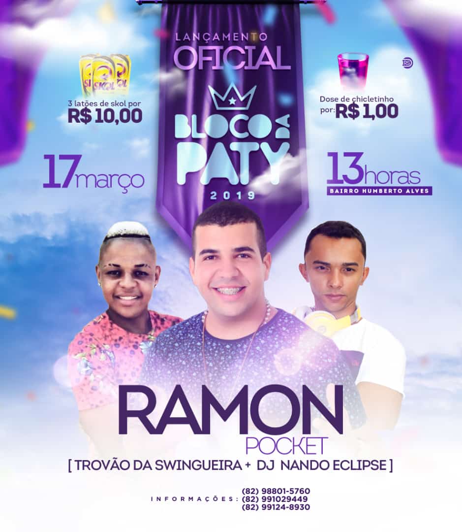 O lançamento do bloco é gratuito e contará com a participação do cantor Ramon e Cia com um Pocket show, da banda Trovão da Swigueira e do DJ Nando Eclipse. A idealizadora do evento, Paty Maionese é natural de São Miguel dos Campos e conta que o evento antecipará a festa de comemoração de seus 17 anos de carreira.