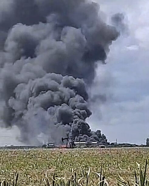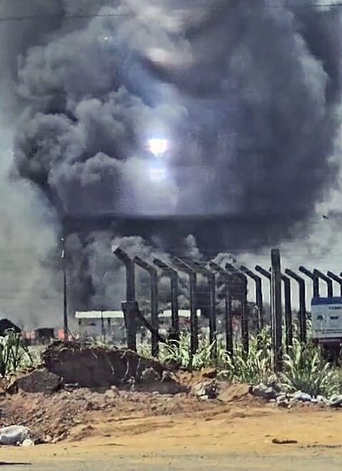 Uma grande coluna de fumaça pode ser vista a grande distância