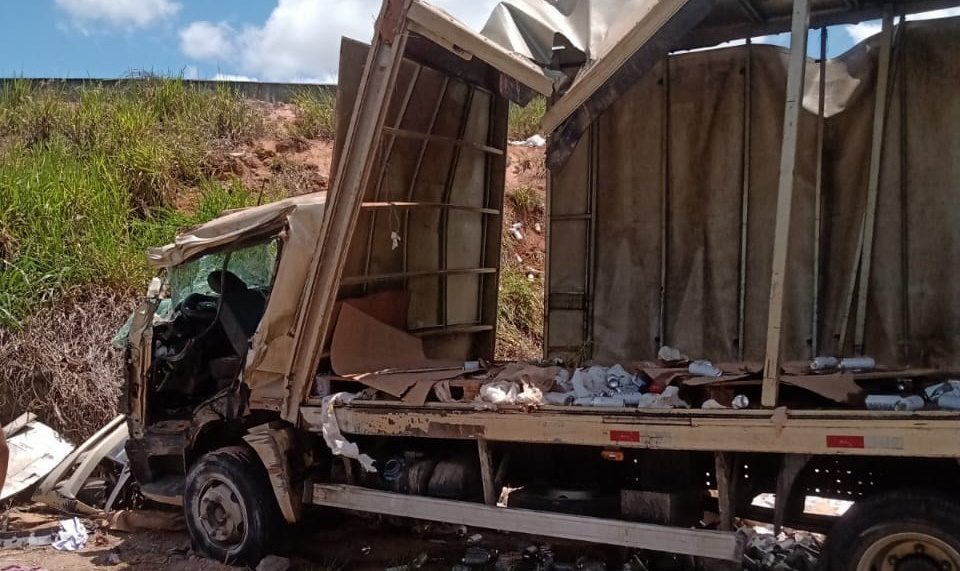 O veículo, do tipo baú, estava carregado com uma carga de cerveja, que ficou espalhada no acostamento da via.
