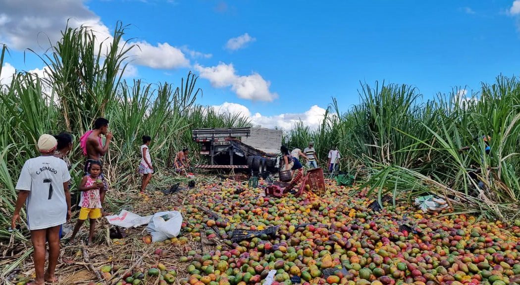 Apesar da destruição causada ao veículo, ainda segundo a PRF, não houve registro de feridos na ocorrência. A carga de mangas foi levada por outros motoristas e populares da região.