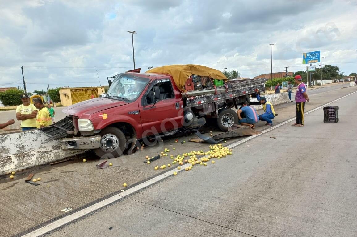 Caminhão fica destruído após bater em mureta na BR 101 em Teotônio Vilela