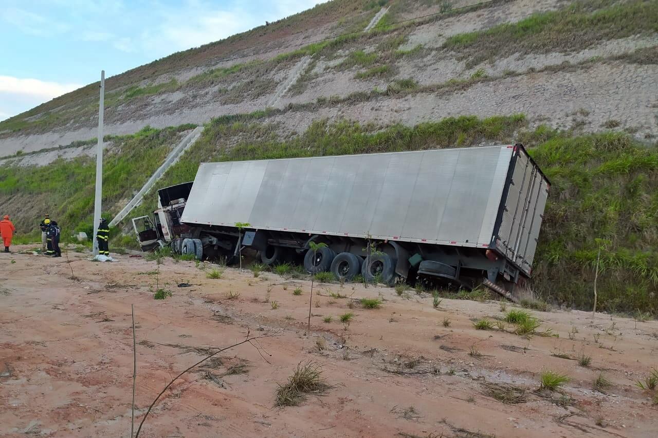 A carreta do tipo baú ficou sem controle e saiu da pista, o veículo acabou se chocando contra uma barreira, as margens da rodovia. A carreta transportava uma carga da empresa Magazine Luiza.