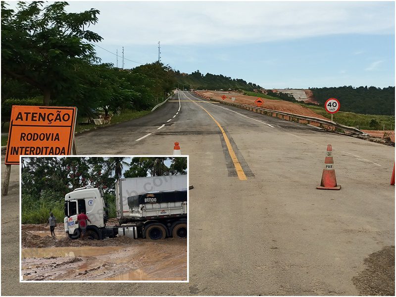 Para seguir viagem, os caminhoneiros precisam enfrentar um desvio de vários quilômetros, que passa pela Zona Rural do município. A estrada, em péssimas condições devido as chuvas, tem causados inúmeros prejuízos aos trabalhadores.
