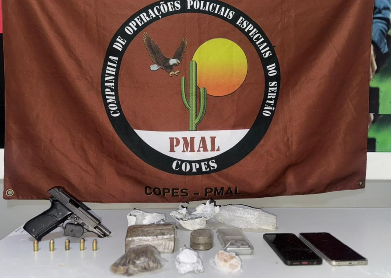 Um casal foi preso em flagrante pela Companhia de Operações Policiais Especiais do Sertão (COPES) na noite da quarta-feira, dia 16, no conhecido Beco do Amor, no município de Piranhas, Sertão de Alagoas. A dupla foi surpreendida pelos policiais durante uma ação de combate ao tráfico de drogas.