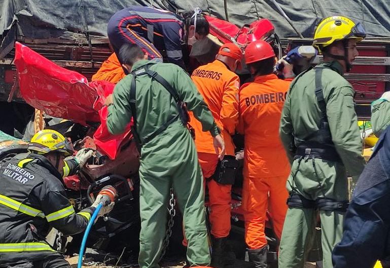 Além dos Bombeiros, trabalham no socorro equipes do Serviço de Atendimento Móvel de Urgência (Samu). A Policia Rodoviária Federal (PRF) também estava no local.