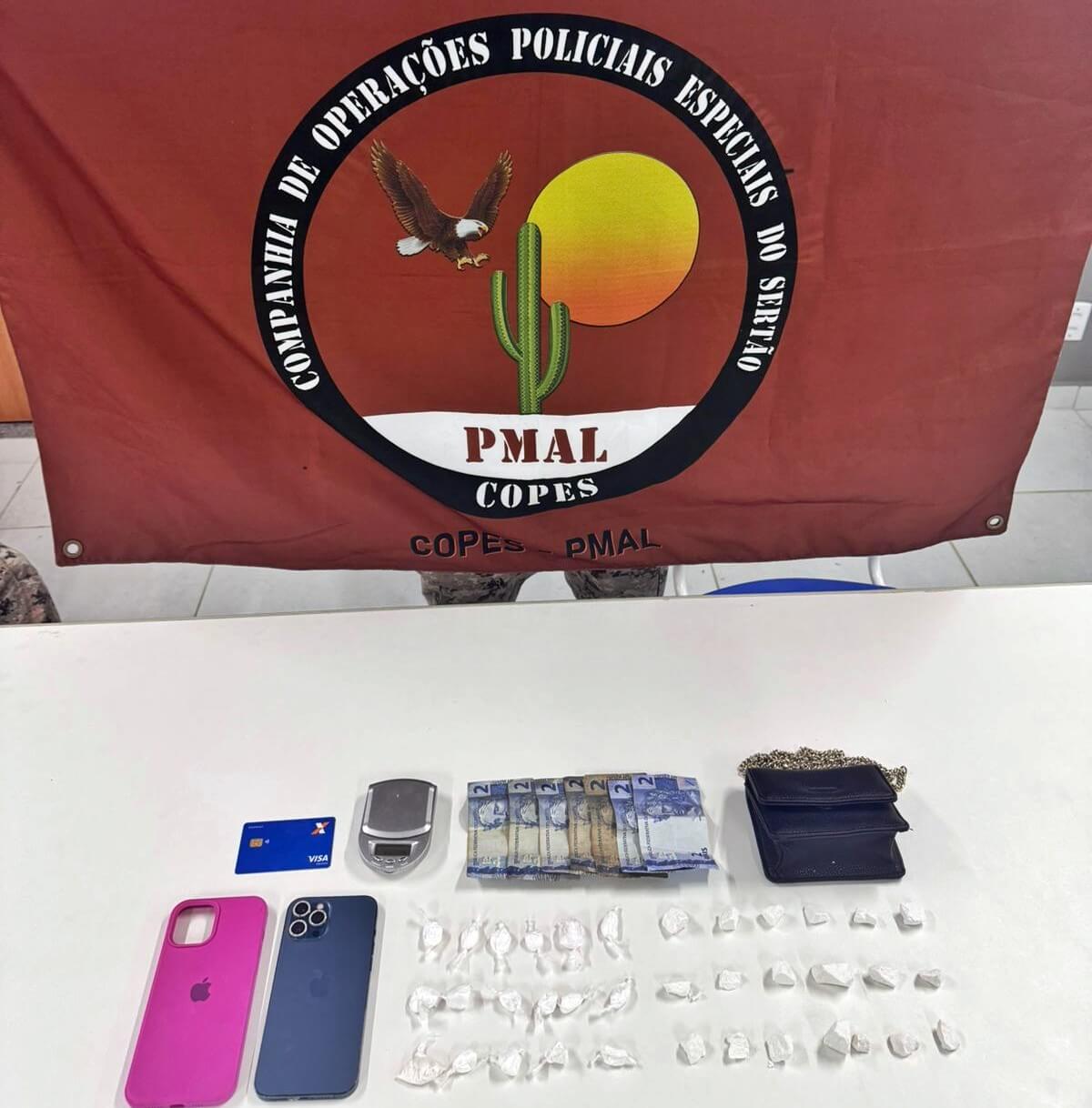 Uma mulher de 20 anos foi presa em flagrante por tráfico de drogas durante uma ação da Companhia de Operações Policiais Especiais do Sertão (COPES), no município de Santana do Ipanema, Sertão de Alagoas.