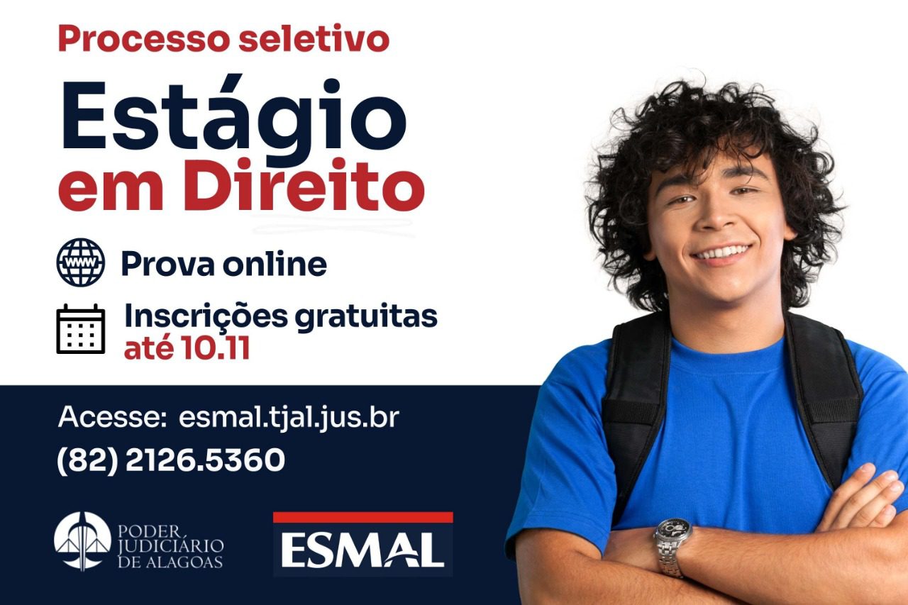 Termina na próxima quinta-feira (10) o prazo de inscrições para estágio em Direito no Poder Judiciário de Alagoas. O concurso tem como objetivo selecionar estudantes que tenham concluído o 4º período (regime de créditos) ou 2º ano (regime seriado) em instituições regularizadas junto ao Ministério da Educação. As inscrições são gratuitas e podem ser feitas aqui.