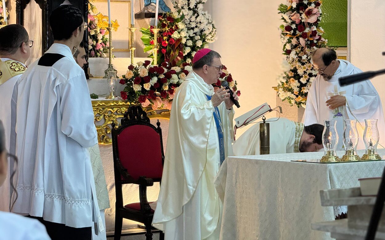 A missa solene desta quinta foi ainda mais especial com a presença do Bispo da Diocese de Penedo, Dom Valdemir Ferreira, que conduziu a celebração e abençoou os fiéis.