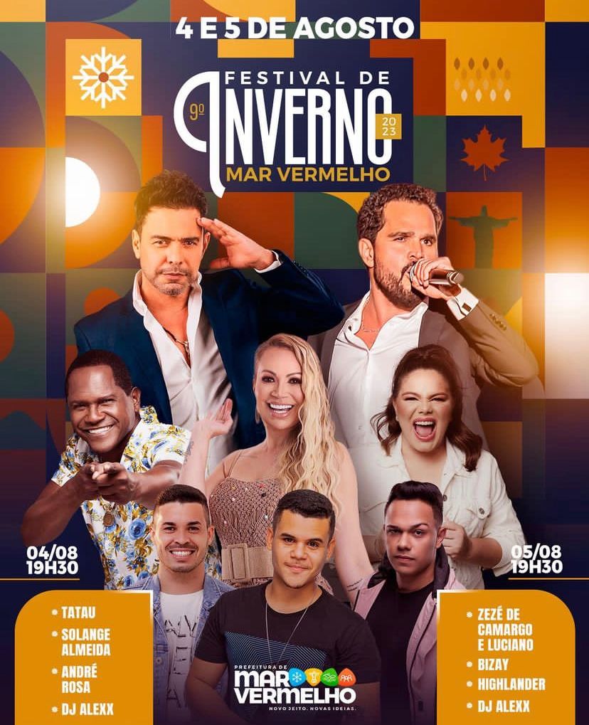 A prefeitura de Mar Vermelho divulgou as atrações da 9° edição do Festival de Inverno de Inverno de Mar Vermelho, que será realizado nos dias 4 e 5 de agosto.