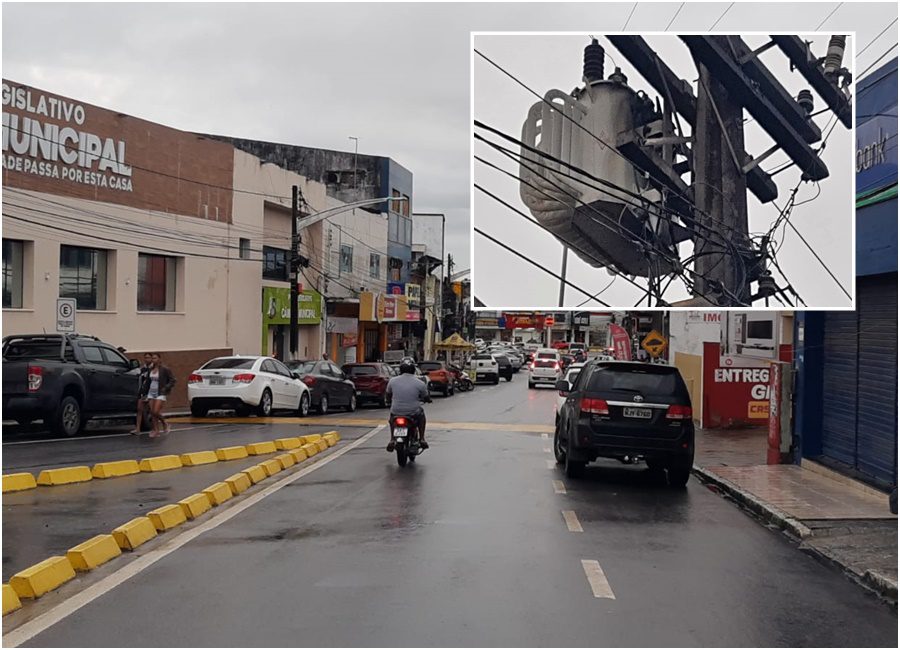 Parte do Centro Comercial de São Miguel dos Campos ficou sem energia, na tarde deste segunda-feira, dia 22, após um transformador pegar fogo na Rua Dr. Romulo de Almeida, em frente à Câmara Municipal, no Centro da cidade.