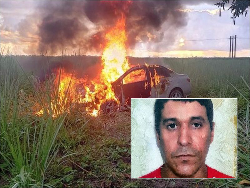 Após o choque entre os dois veículos, o carro modelo Toyota Corolla, cor prata, capotou e pegou fogo, dentro de um canavial as margens da via.