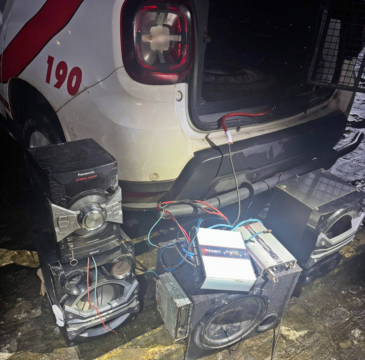 A ocorrência foi registrada na Avenida Jorge Cavalcante Madeiro, após denúncia anônima alertar sobre o volume excessivo do som no local.