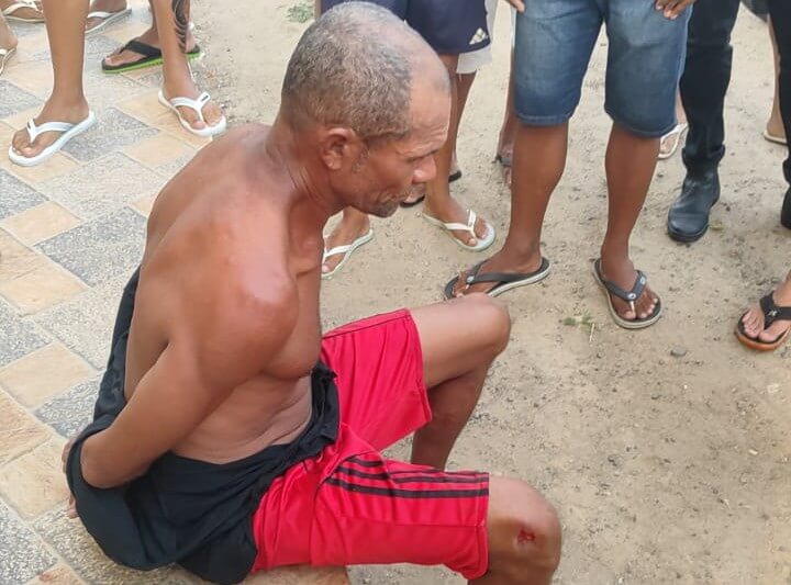 Um homem de 46 anos foi linchado por populares e preso em flagrante pela Polícia Militar, através da 1ª Cia Independente, na tarde do sábado, dia 13, após assaltar e espancar brutalmente um idoso de 72 anos.