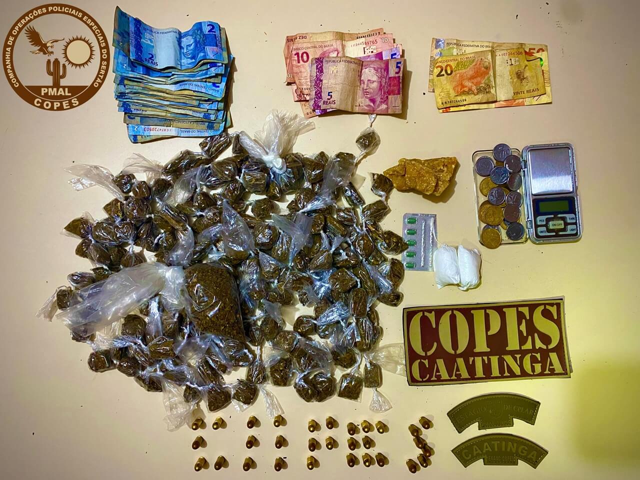 A ação foi realizada por policiais da Companhia Independente de Operações Policiais Especiais (Copes-Caatinga), que realizavam rondas pela cidade quando receberam informações sobre um possível local de tráfico de drogas.