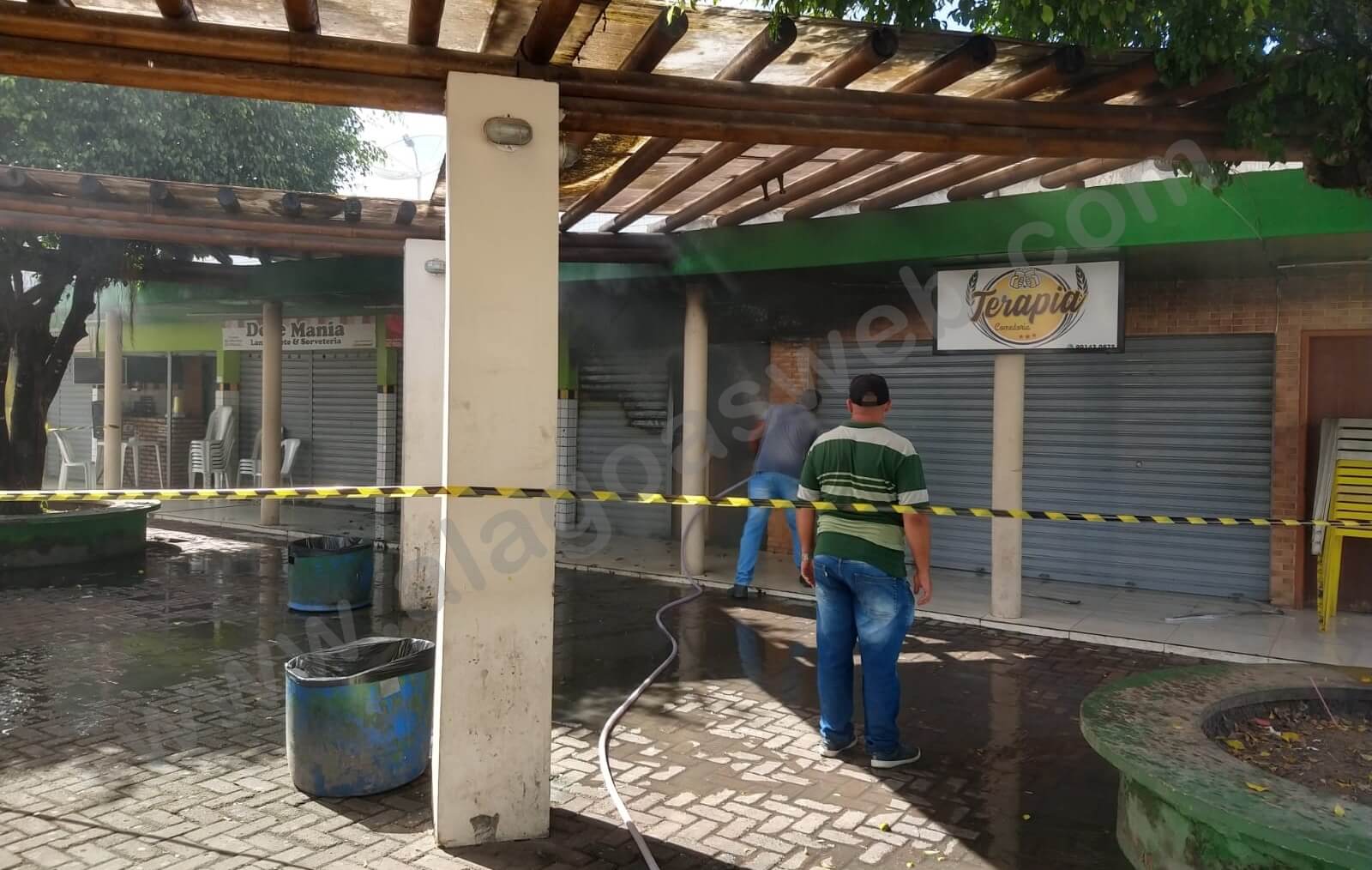 Incêndio atinge quiosque em praça de alimentação no Centro de São Miguel dos Campos