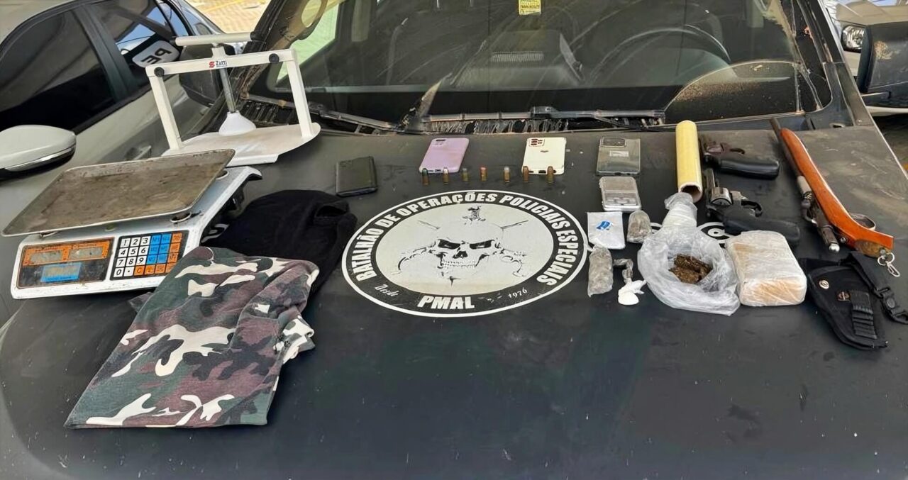Durante a ação, os policiais apreenderam três armas de fogo, além de munições, drogas, balanças de precisão e outros materiais utilizados pelo grupo criminoso para a prática do tráfico e demais atividades ilícitas.