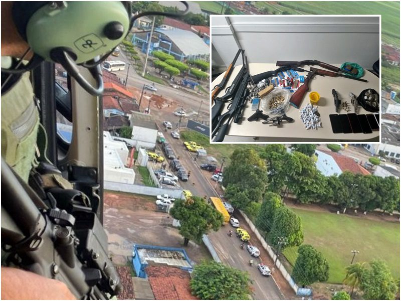 Foram presas até o momento seis pessoas, aprendidos celulares, aproximadamente 1,2 kg de maconha, 08 armas, duas espingardas de pressão, 150 munições de diversos calibres e uma balança de precisão.