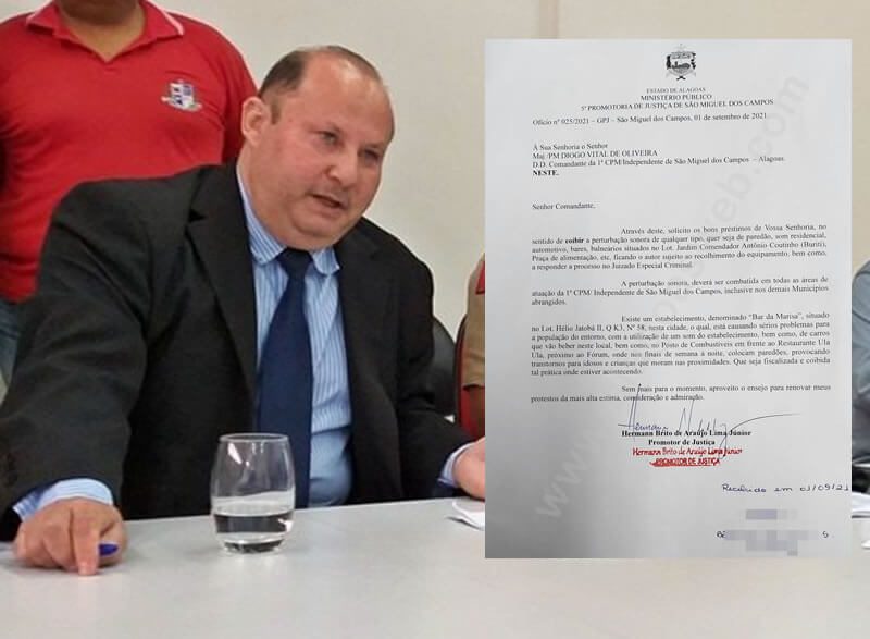 O Promotor de Justiça Hermann Brito Lima Junior, da 5ª Promotoria de São Miguel dos Campos, determinou, através de Oficio (025/2021), que Polícia Militar, por meio da 1ª Cia Independente, deve coibir a perturbação sonora de qualquer tipo no âmbito do município.