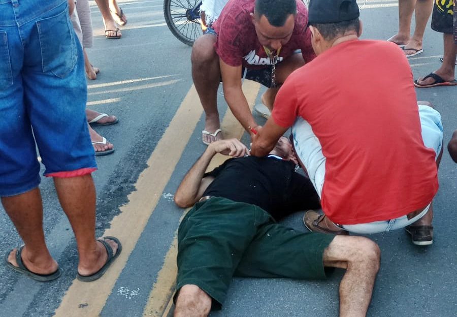 O motociclista Robson João de Oliveira, de 48 anos, foi socorrido, na tarde do domingo, dia 28, vitima de um acidente de trânsito na Rua Cel. José Antônio da Cruz (Rua do Cemitério), entre a região alta e baixa de São Miguel dos Campos.