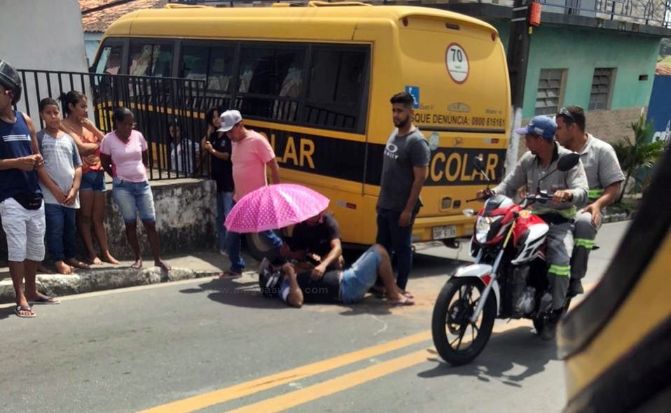O motociclista José Cicero da Silva, de 53 anos, foi socorrido por uma equipe do Serviço de Atendimento Móvel de Urgência (Samu), após colidir contra um ônibus escolar na inicio da tarde desta segunda-feira, dia 1º.