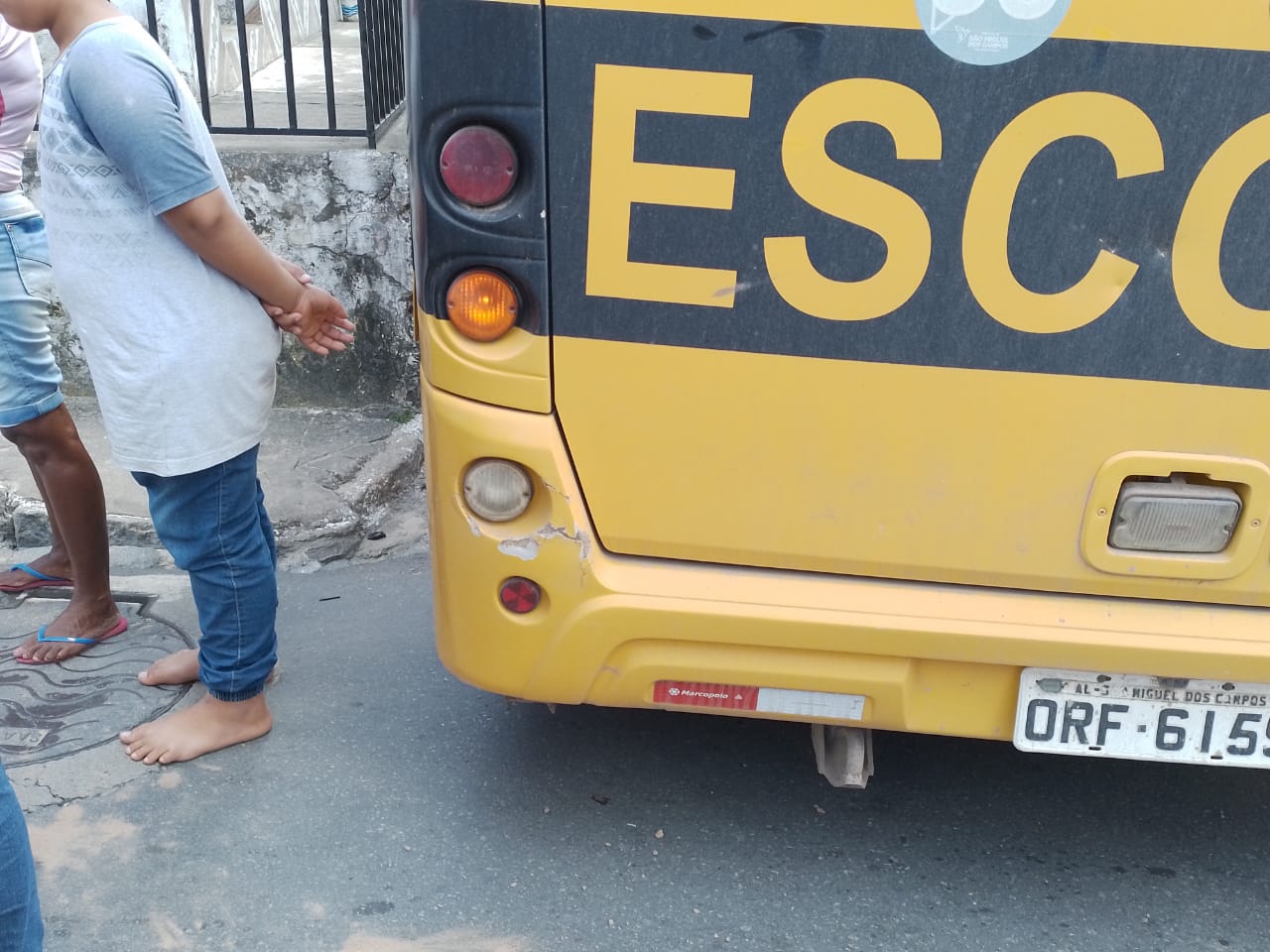 O homem guiava uma motociclista Honda Biz, cor prata, placa QLL-1645/São Miguel dos Campos, quando bateu na traseira do coletivo escolar Marco Polo Volare, cor amarela, placa ORF-6159/AL.