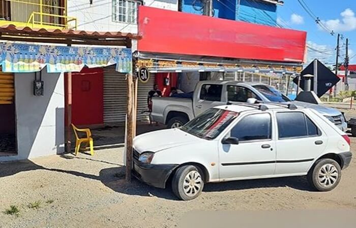 Testemunhas disseram que ele só não conseguiu atropelar as pessoas porque bateu com o carro, Ford Fiesta branco, contra a linha de madeira que sustenta o telhado do bar.