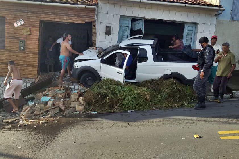 Uma caminhonete Fiat Strada, cor branca, de placa não informada, destruiu parte da fachada de duas casas na manhã desta segunda-feira (22), após o condutor perder o controle da direção do veículo.