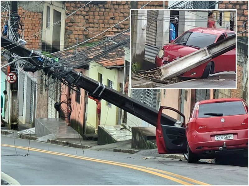 O motorista de um Fiat Punto, cor vermelha, placa, KIX-0899/Recife (PE), derrubou um poste após perder o controle do carro quando descia a ‘ladeira do cemitério’ (Rua Cel. José Antônio da Cruz), entre a parte baixa e alta de São Miguel dos Campos.