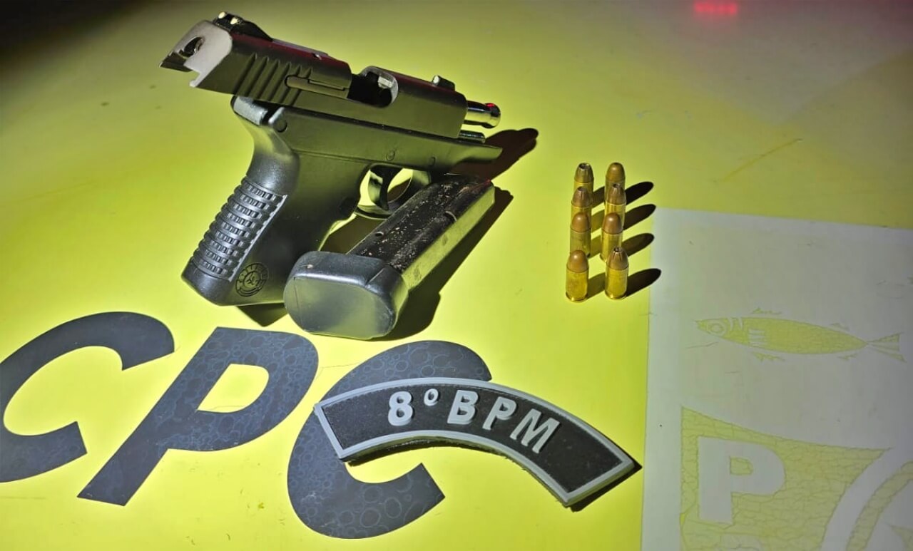 De acordo com a PM, uma guarnição realizava patrulhamento quando recebeu informações do serviço de inteligência indicando que um veículo Fiat Uno vermelho estaria circulando com um ocupante armado.