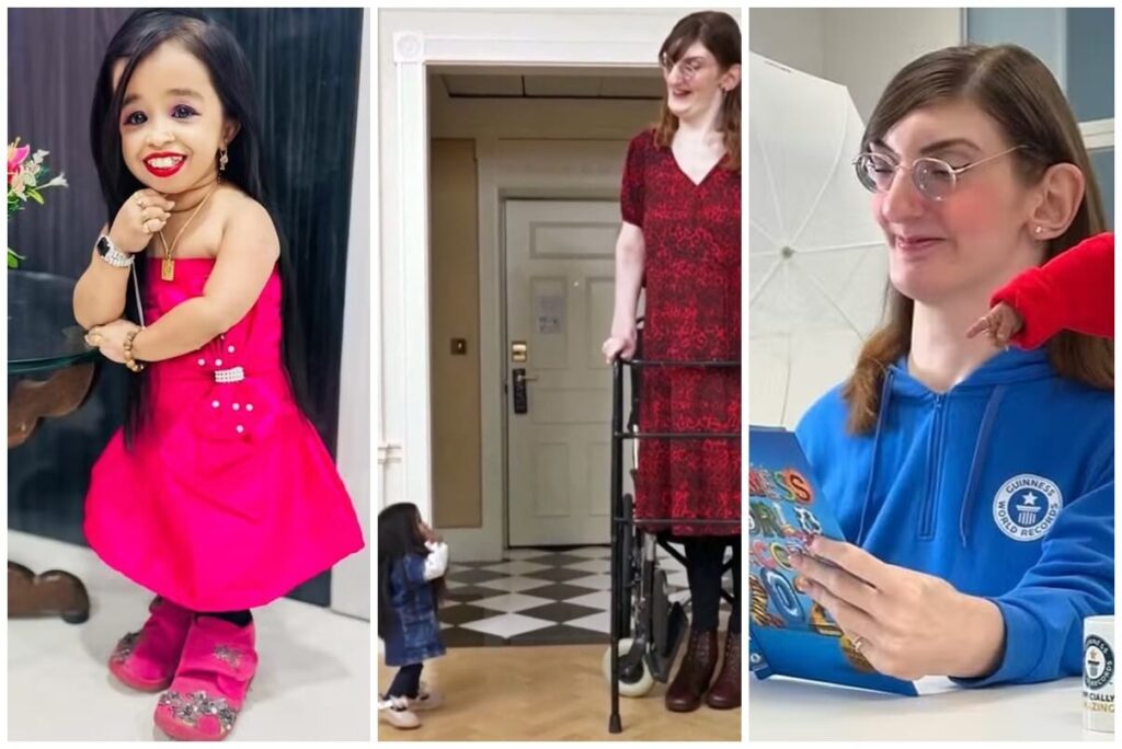 Rumeysa Gelgi, pesquisadora turca com 2,15 metros de altura, detém o título de mulher mais alta do mundo. Já Jyoti Amge, atriz indiana que mede apenas 62,8 centímetros, é reconhecida como a mulher mais baixa do mundo.