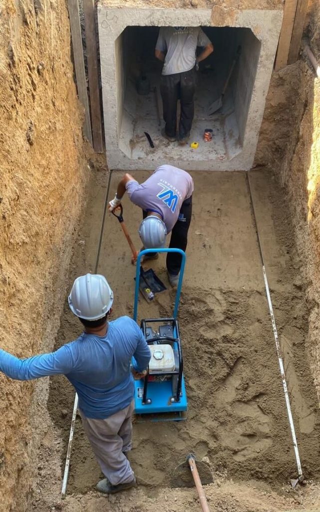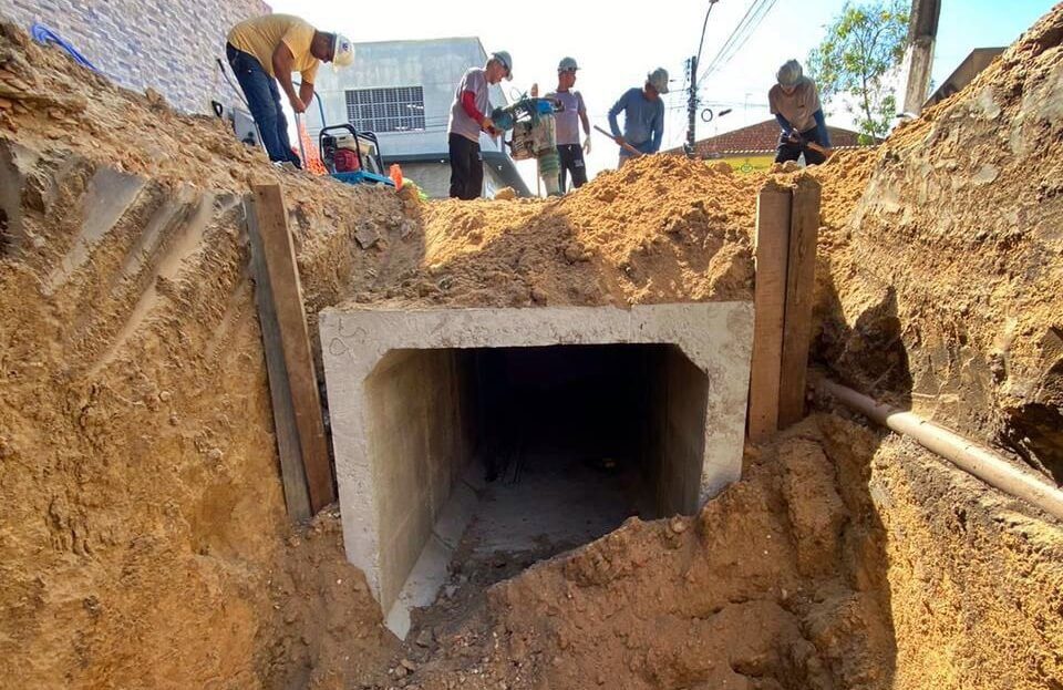 Após o encerramento da microdrenagem na obra, referente à 1ª etapa, de drenagem, saneamento e pavimentação, no Loteamento Hélio Jatobá, em São Miguel dos Campos, foi iniciada durante esta semana, a macrodrenagem, no Hélio I. Esta nova fase conta com assentamento de aduelas de concreto (1,5x1,5), com valas abertas de 3m de largura.