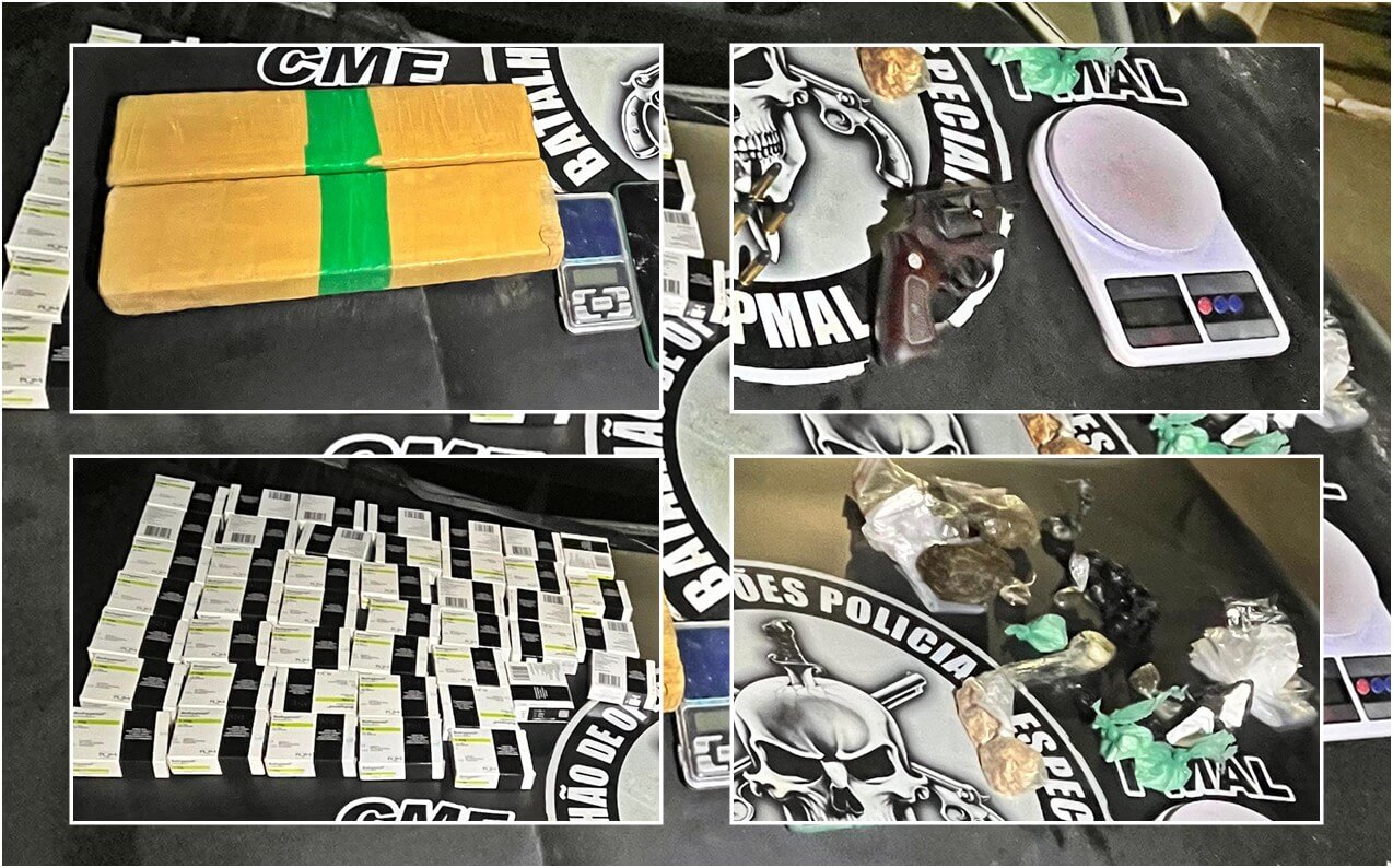Além de uma arma de fogo – revolver calibre 38, com oito munições -, a 1ª Cia apreendeu 2,160 kg, 288 g de cocaína, 71 g de crack, 44 caixas de Rohypnol2 e balanças de precisão, instrumento usado para pesagem do entorpecente.