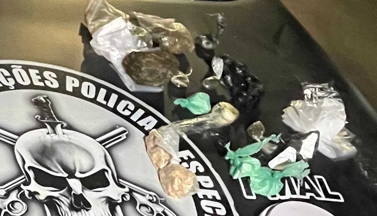 No loteamento Hélio Jatobá II (parte alta), após denúncias anônimas, foram presos um homem de 31 anos e uma mulher de 25 anos, flagrados com grande quantidade de entorpecentes e material ilícito.