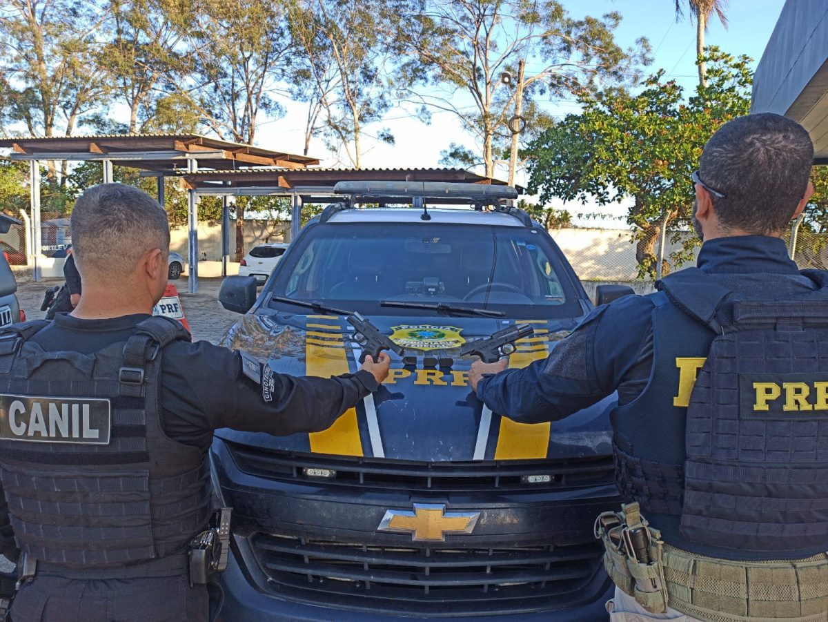 Dois homens foram presos pela Polícia Rodoviária Federal (PRF) por porte ilegal de arma, na tarde de quarta-feira (26). O caso aconteceu no km 205 da BR-101, em São Sebastião.