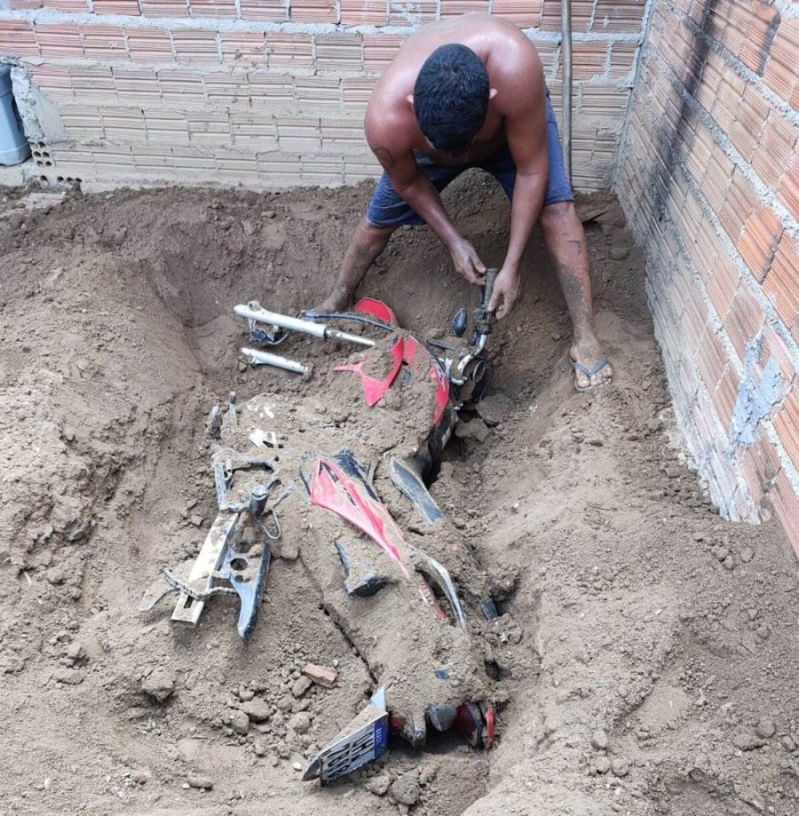 Polícia recebe denuncia de drogas e descobre moto enterrada em quintal de casa no interior de Alagoas