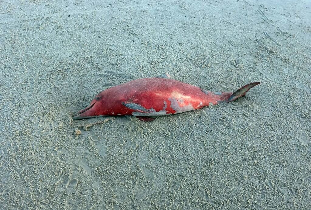O animal, da espécie Sotalia guianensis, popular boto-cinza, é fêmea e mede 1,69m, foi encontrado por populares, ele está com parte do corpo enterrado na areia e apresenta marcas, supostamente ferimentos, que ainda serão avaliados.