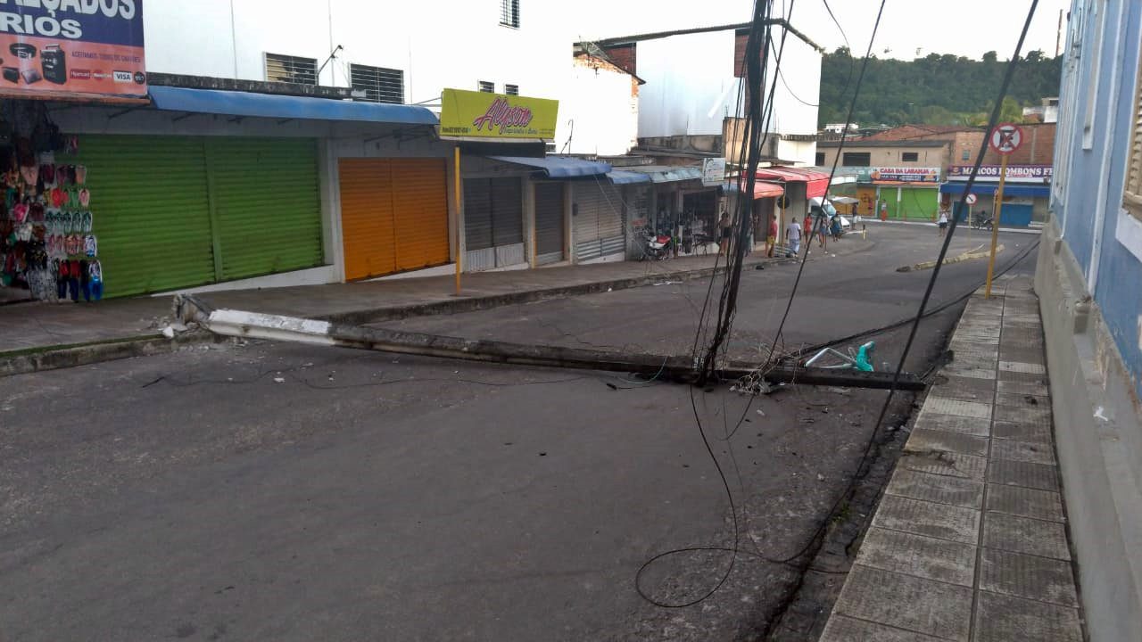 Três postes de iluminação pública desabaram após a queda de um dos equipamentos localizados no inicio da rua, no encontro com a Rua Visconde de Sinimbu.