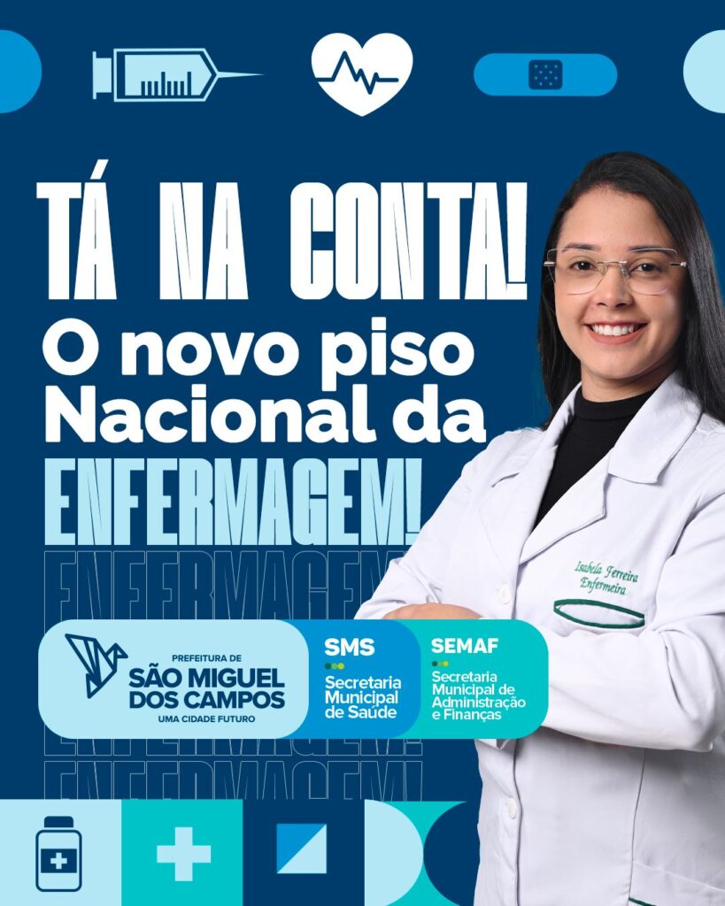 A Prefeitura de São Miguel dos Campos, através da Secretaria Municipal de Saúde e da Secretaria de Administração e Finanças, liberou nesta sexta-feira (22), o pagamento do piso nacional de Enfermagem para os servidores públicos municipais que ocupam cargos de enfermeiro, técnico de enfermagem, auxiliar de enfermagem e parteiro.