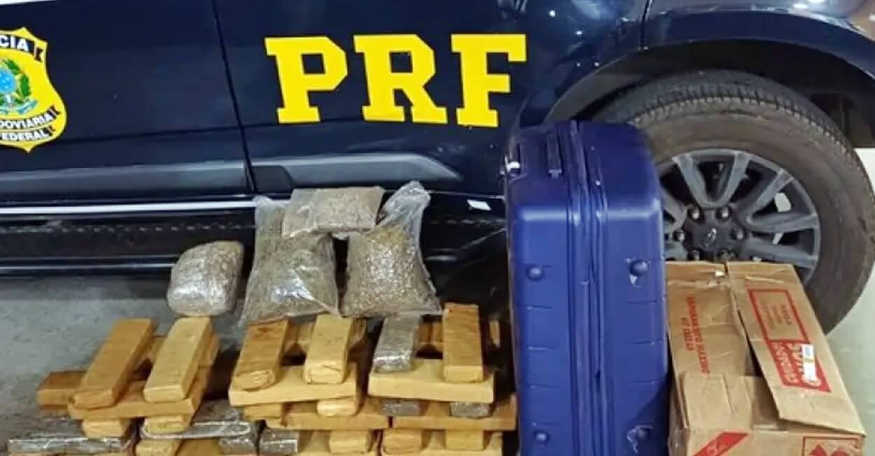 De acordo com a polícia, durante vistoria no bagageiro do veículo, a equipe percebeu um forte odor característico de maconha. Na sequência, foram encontradas quatro malas cheias de entorpecentes.