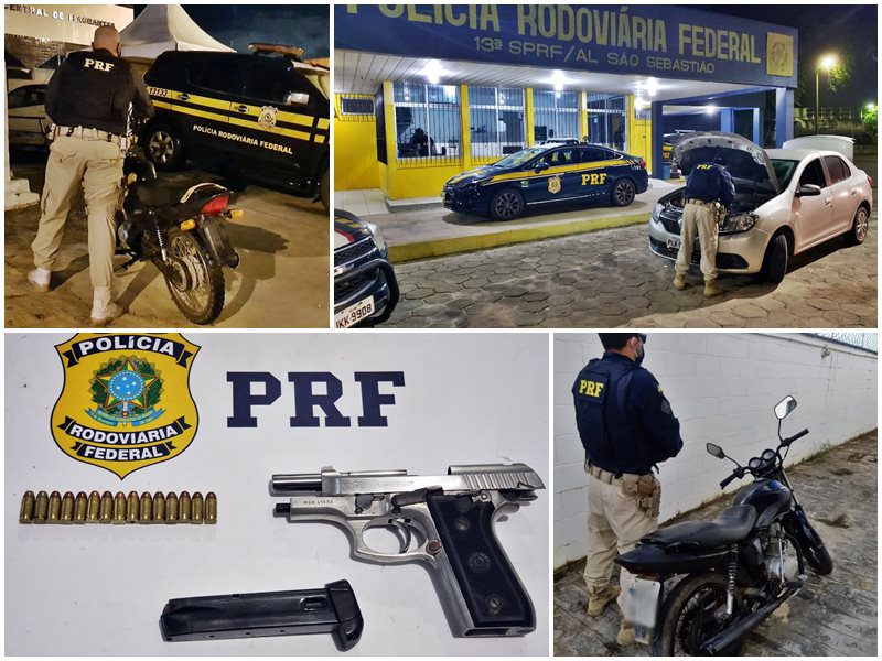 Três veículos adulterados foram recuperados e cinco pessoas foram detidas pela Polícia Rodoviária Federal (PRF) em Alagoas. As ocorrências aconteceram entre a tarde da segunda (08) e a madrugada de hoje (09), nas BRs 101 e 104. Uma arma de fogo também foi apreendida.