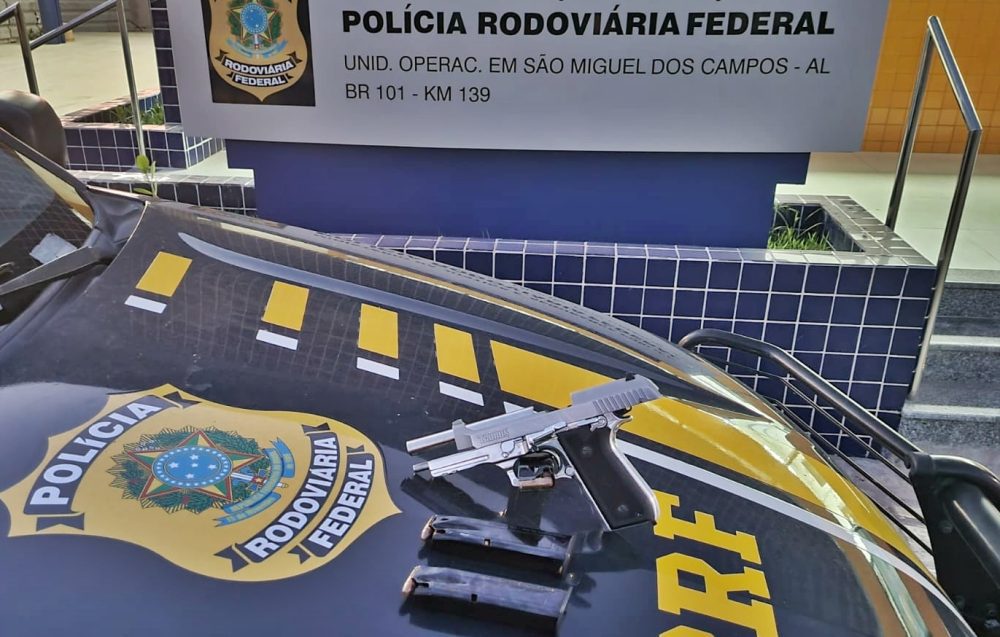 A Polícia Rodoviária Federal (PRF) prendeu um homem por porte ilegal de arma de fogo na tarde de segunda-feira, dia 19. O caso foi registrado no km 139 da BR-101 no município de São Miguel dos Campos.