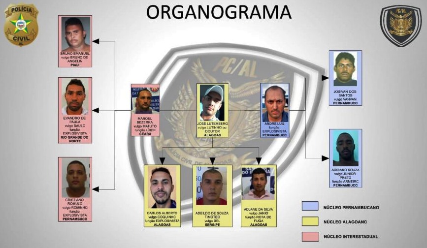 Entre os membros da quadrilha, o destaque para a ação do explosivista Carlos Alberto de Lima, conhecido como “Coquinho”, responsável por, pelo menos, 30 ataques a instituições financeiras do estado, nos últimos três anos.